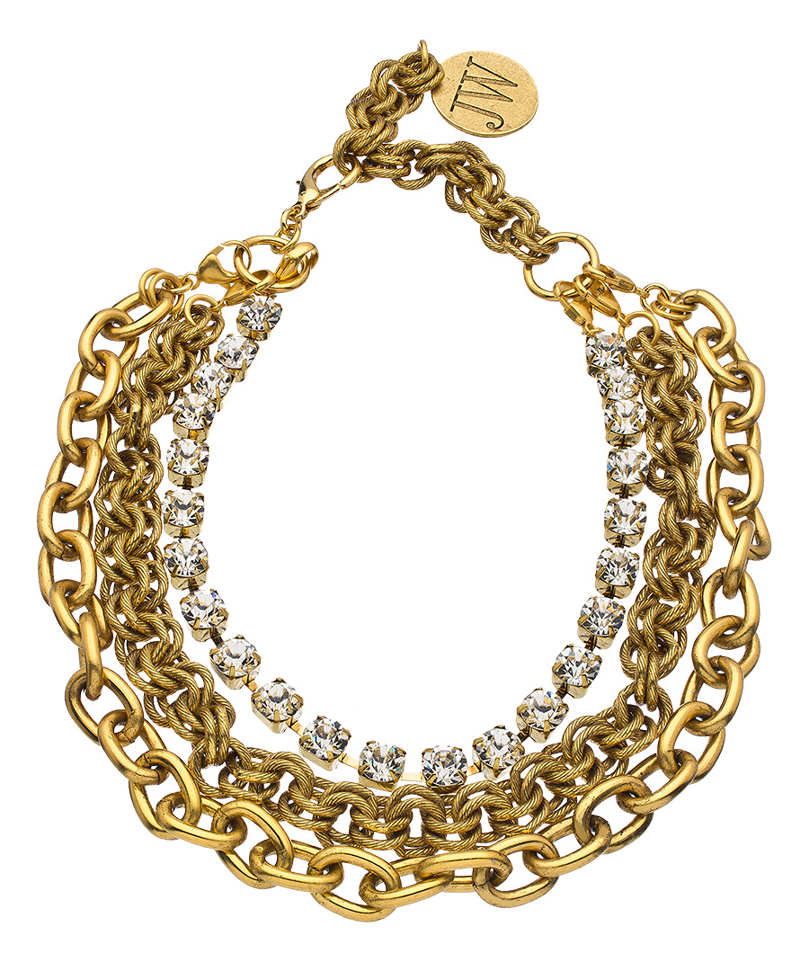 Rich, gold textured rope chain and sparkling crystals comprise this John Wind Maximal Art gold day to evening convertible necklace. BONUS: This convertible necklace has removable strands and findings and can be worn over 12 different ways! It's the perfect travel necklace!