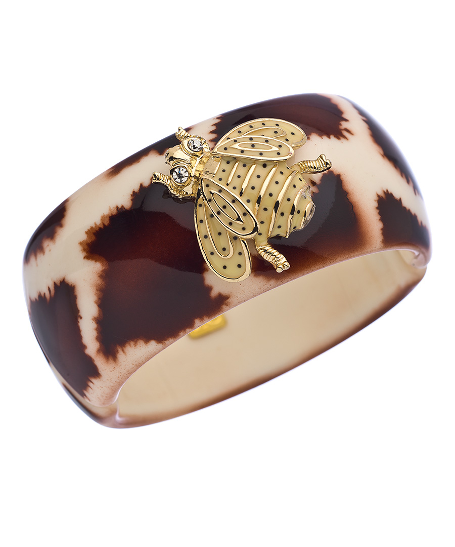 Wearing this John Wind Maximal Art ivory and brown spotted bangle with gold, enamel and crystal bee bracelet will give you an air of elegance - with just a touch of whimsy! The irresistible bee is crafted from gold and enamel and features sparkling crystal eyes. Bracelet fastens with a magnetic clasp.
