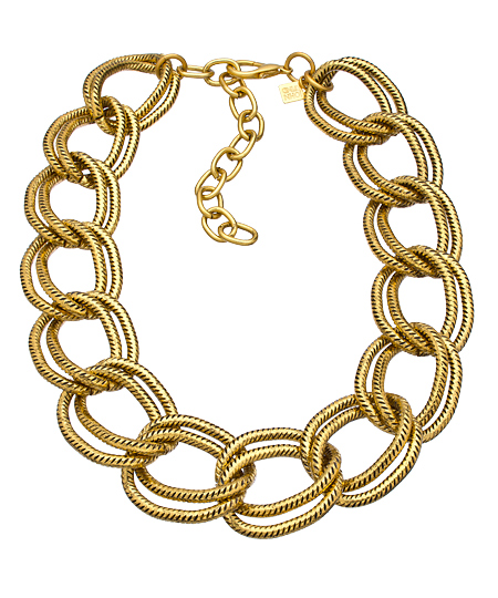 Create a classy high impact look with this amazing large gold chain link necklace from John Wind Maximal Art. The necklace features doubled up oval snake links and works with so many looks.