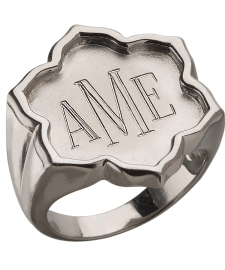 The Jordann sterling silver magnolia signet ring adds personality to your look. The face of your ring can be engraved with up to three characters. The raised sterling silver magnolia shape frames your engraved initials for a feminine touch.