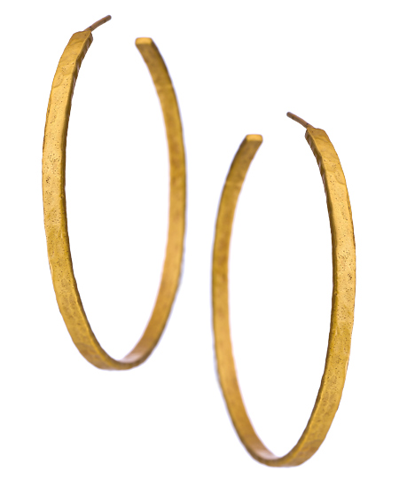 Simply stunning elegance is yours in these Julie Vos gold crescent hoop earrings. The artisan feel of these lovely earrings is further enhanced by the hammered gold texture, making these go-with-everything earrings a must have. Earrings have a post closure for pierced ears.