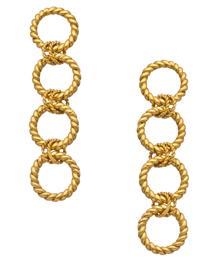 Looking for an easy way to movement and texture to favorite outfits? Then look no further than the Isabella four rings earrings from Julie Vos. Twisted rope circle-links create a fun, feminine jewelry accent that looks lovely any time. The chic dangles include straight back posts for pierced ears.