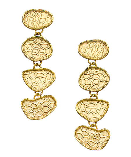 Unique, innovative and exotic, these Kanupriya gold cobblestone earrings are expertly crafted and sure to provide a touch of elegance for many wardrobe options. The cobblestones are represented brilliantly, in these interesting and rich looking earrings that have a post closure for pierced ears.