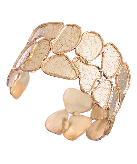 This Kanupriya rose gold cobblestone double row cuff bracelet is the one you've been waiting for! The open cuff design allows for easy on and off, while the scintillating rose gold will provide a perfect finishing touch for many wardrobe options. Bracelet adjusts slightly to fit.