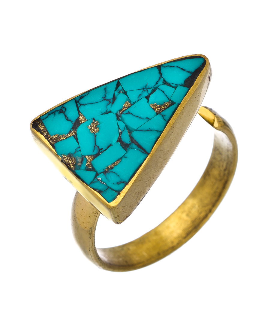 Score a win for Karen London - and you, when you wear this striking brass and turquoise desert moon ring. The mosaic stone is expertly inlaid in the brass setting - making for an excellent everyday finishing touch. Handmade in Nepal, this ring is a must-have.