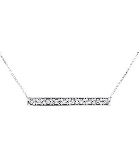 Raise the bar in style with the diamond bar necklace from KC Designs. The sleek pendant is crafted with ten brilliant diamonds and sparkles like a magical wand. Sweet and delicate with an edgy twist, this necklace makes an elegant statement.