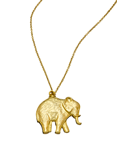 Get your very own gold elephant pendant necklace from Kendra Phillip. The pretty pendant grabs attention with its elephant shape and artistic texture. This necklace fastens with a spring ring closure.