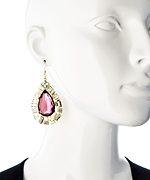 Make a style impression with these traffic-stopping amethyst crystal teardrop statement earrings from Kenneth Jay Lane. Beautiful Austrian crystals form large purple teardrops with a dazzling geometric frame. The glamorous art deco earrings offer high-impact sparkle and shine.