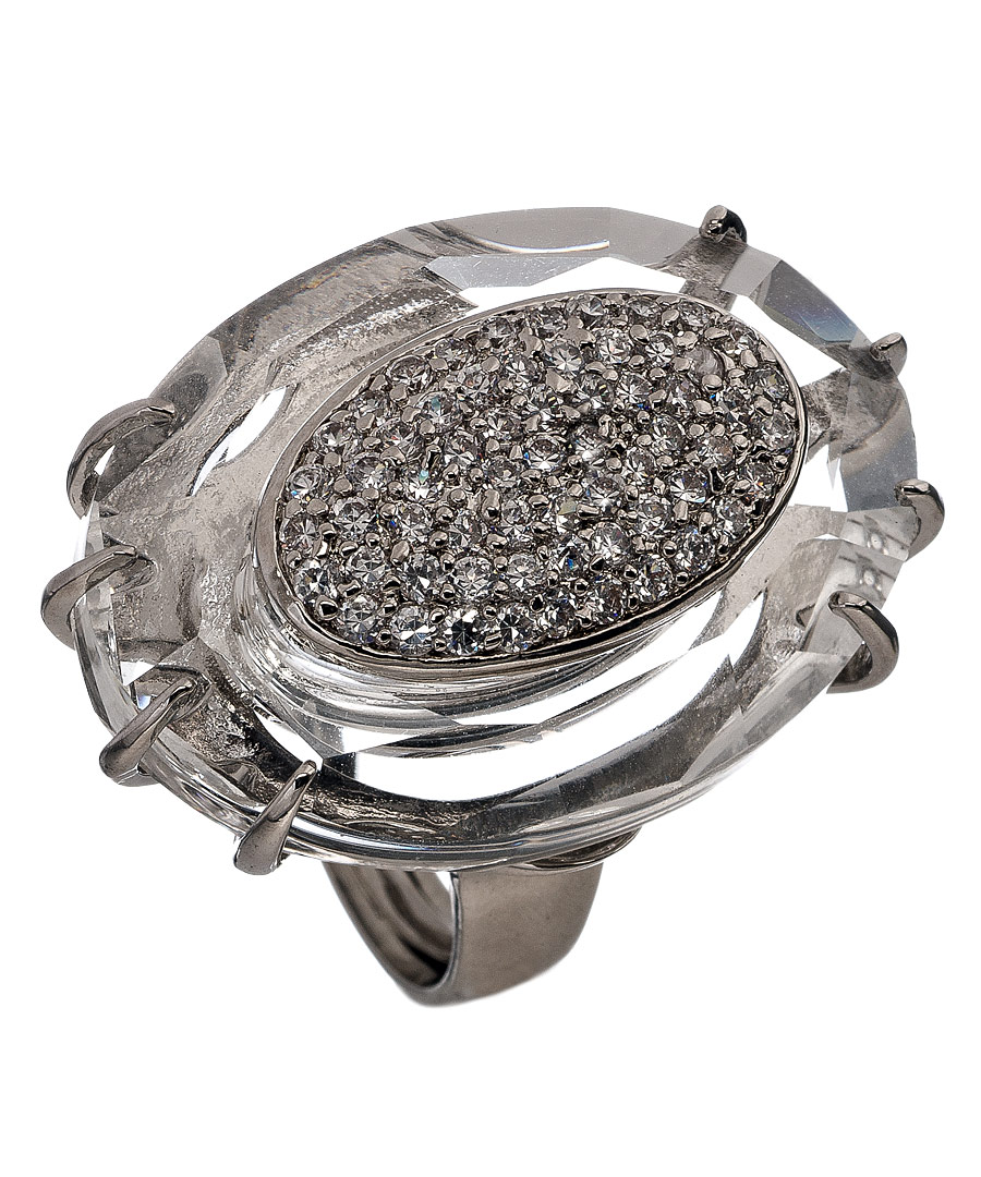 Get the look of opulence with this clear crystal pave cocktail ring from Kenneth Jay Lane. The ornate oval ring face is prong set and features an oval center which is brilliantly decked out in pave crystals. It's an elegant and classic style with a contemporary feel.