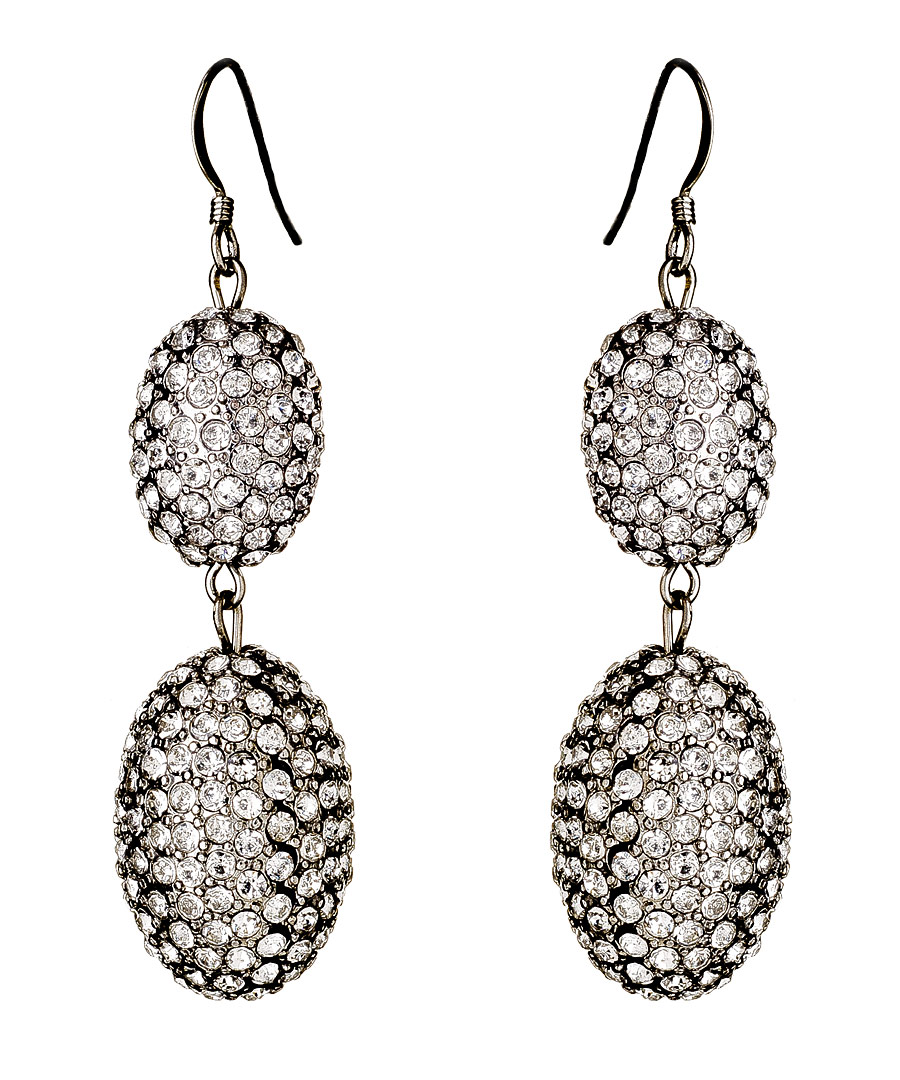 How magnificent are these crystal encrusted dangle earrings from Kenneth Jay Lane? You can't help but fall in love with earrings as beautiful as these. They are absolutely heaven for the girl who loves bling. These earrings fasten with a French wire back closure for pierced ears.