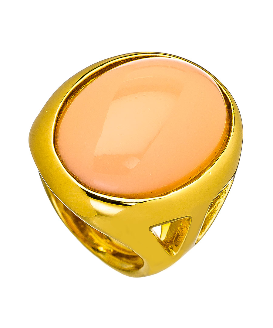 You'll be pretty in pink in this oval angel skin cocktail ring from Kenneth Jay Lane. The angel skin coral stone is oval shaped and is bezel set in the gold plated ring.
