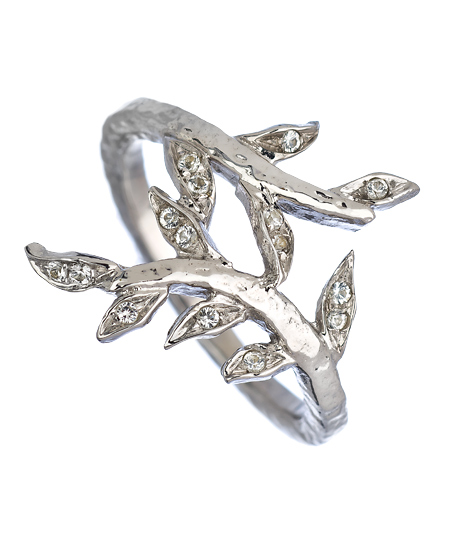 KiraKira's silver and white sapphire laurel ring is exquisitely crafted and beautifully realized. Silver laurel leaves are adorned with sparkling white sapphires, arranged in graceful, refined lines. It's the perfect sparkle quotient for fabulous!