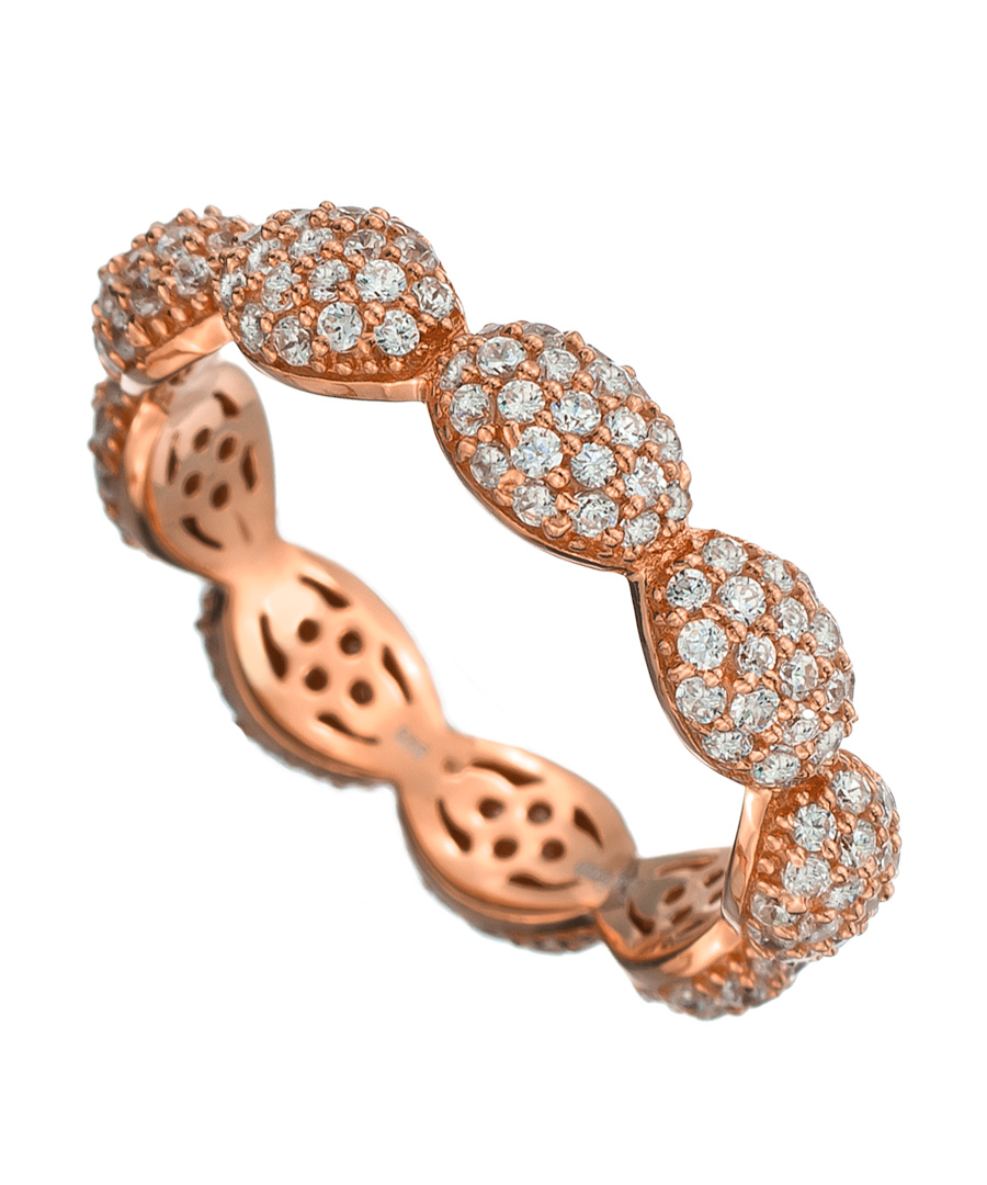 A touch of sparkle on your finger - never out of place. Luckily, this Lafonn rose gold signature dot band ring more than fills the requirement, it does so with a backdrop of gorgeous rose gold. Oval shapes are studded with simulated diamonds and linked around your finger. The look is feminine and luxe.