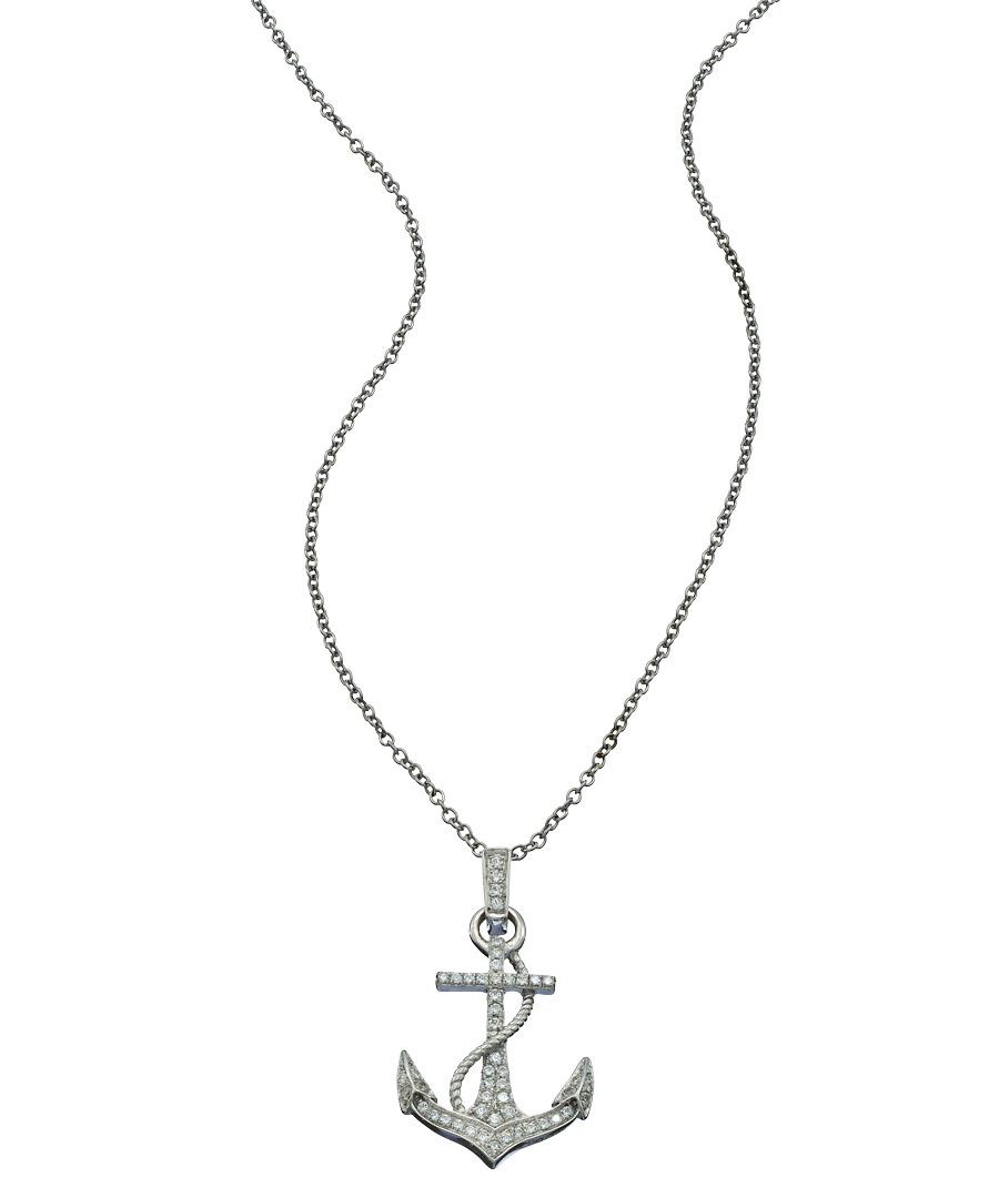 Ahoy matey! Give your look a nautical zing with this gorgeous Lafonn silver anchor pendant necklace. The beautiful pendant rests on a strong chain and is adorned with dozens of twinkling simulated diamonds. Wear it while you sail the seven seas... or just dream about it! Necklace fastens with a lobster claw clasp.
