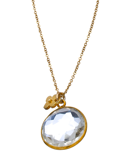 Fairy tale sparkle comes to life with this magical white topaz round pendant necklace from the Lauren Sigman Audra Collection. A round glowing white topaz gemstone and a small clover charm, dangle on a slender gold filled chain. It adds the perfect touch of glamor to your signature style.