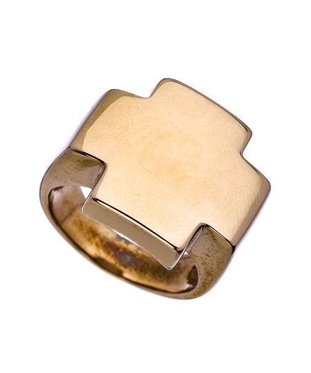 Elevate your look with this striking gold Georgia ring from Le Mos. The large mirrored cross in the center gives it a stylish fashion presence you can't ignore. Its unique design makes an appealing right-hand ring for work or after-hours accessorizing.