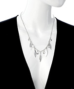 Get lost in the neat designs of Lisa Stewart with this Eve marquis disk necklace. Alternating marquis drops and CZ disks fan around the necklace for a lovely and feminine feel. The shiny rhodium on this necklace adds a lustrous shine.