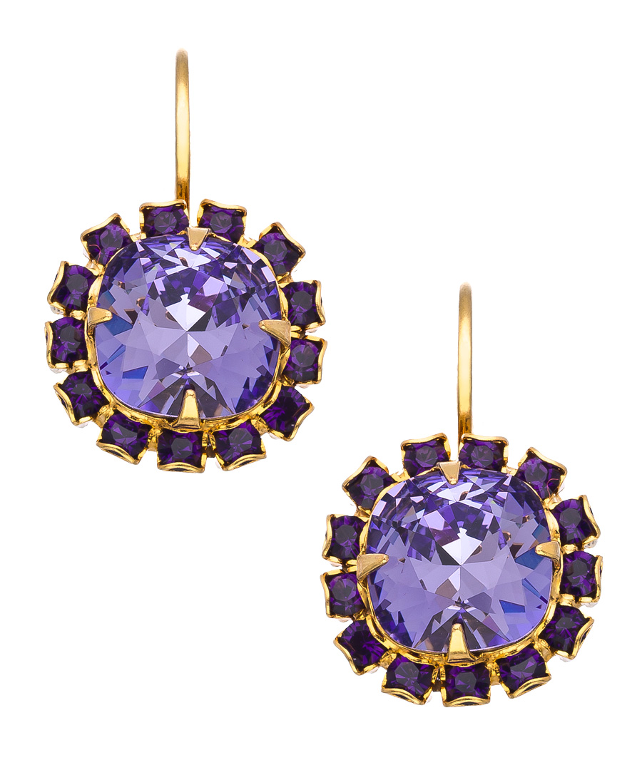 You can see the sparkle in Liz Palacios' purple velvet cushion post earrings from far away. Dazzling Swarovski crystals in a sunburst pattern take your breath away. Be prepared to wow everyone in your company!