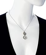 When you want to look your absolute best, glam up your outfit with this silver and crystal double flower pendant necklace from Lolita Jewelry. A flower bud and one in full bloom are given the royal treatment with a creamy pearl in the center of each one. The gorgeous pendant hangs from a strong link chain. Necklace fastens with a lobster claw clasp.