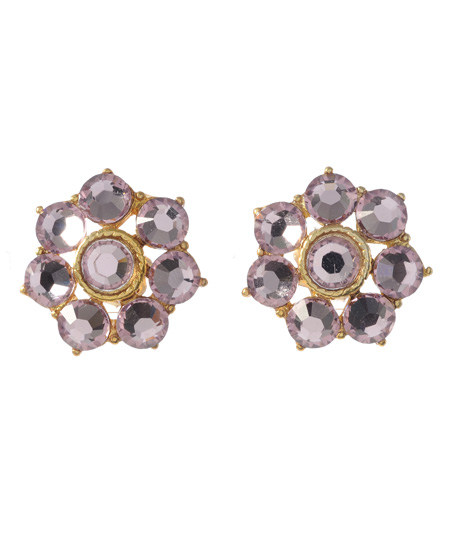 A distinctive shade of rose makes these M. Flynn frosted rose earrings a unique piece. The crystals are arranged in a flower shape, allowing for a gorgeous look to this piece. The stone at the center is framed in gold, giving this piece an extra amount of shine.