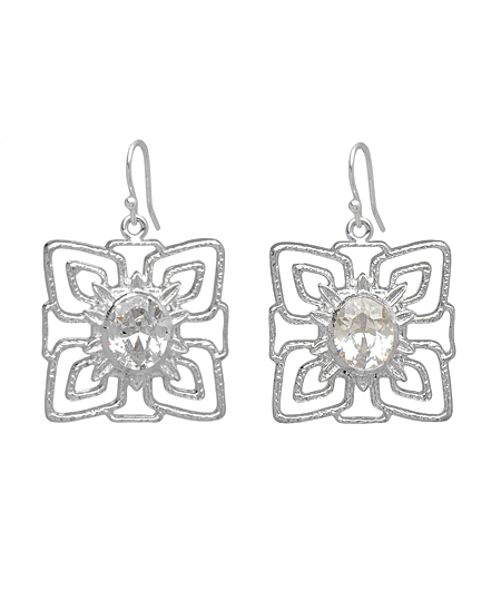 Shimmering silver surrounds a dazzling cubic zirconia in these Marie Todd Ella silver and crystal earrings. Lacy silver filigree adds a touch of drama. Earrings feature a french wire closure for pierced ears.
