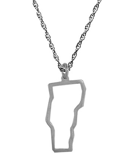 Maya Brenner Vermont pendant necklace is a sensational representation of the Green Mountain State. Crafted with sterling silver, this necklace features the outline of Vermont. The piece can be accented with a lustrous diamond anywhere along the perimeter for a hint of fabulous sparkle. Measuring 1 inch long, the Vermont state pendant dangles from a matching 16 inch long chain. Please specify location of diamond placement, if selected, in the notes at checkout. Diamond pieces are custom orders and final sale.
