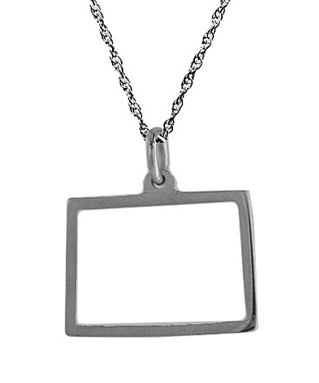 Maya Brenner Wyoming pendant necklace is a beautiful representation of the Cowboy State. Crafted with sterling silver, this necklace features the outline of Wyoming. The piece can be accented with a lustrous diamond anywhere along the perimeter for a hint of fabulous sparkle. Measuring 1 inch long, the Wyoming state pendant dangles from a matching 16 inch long chain. Please specify location of diamond placement, if selected, in the notes at checkout. Diamond pieces are custom orders and final sale.