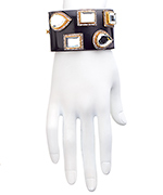 Meghna Designs brings you this black and crystal Bora Bora wide bangle bracelet: a sleek, modern classic - with a touch of Old World elegance. The smooth, black bracelet provides a stunning backdrop for the various shapes of reflective stones, each of which has its own frame of dazzling CZs. Bracelet has a hinged, box tab closure.