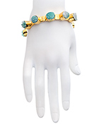 Hypnotic green druzy stones are given the royal treatment in this Meghna Designs gold and green druzy bangle bracelet. Ten green druzies dot the textured gold band in this expertly designed and beautifully realized bracelet. Whether you stack it or it stands alone, this bracelet is sure to be the one you reach for when you need that "just right" finishing touch.