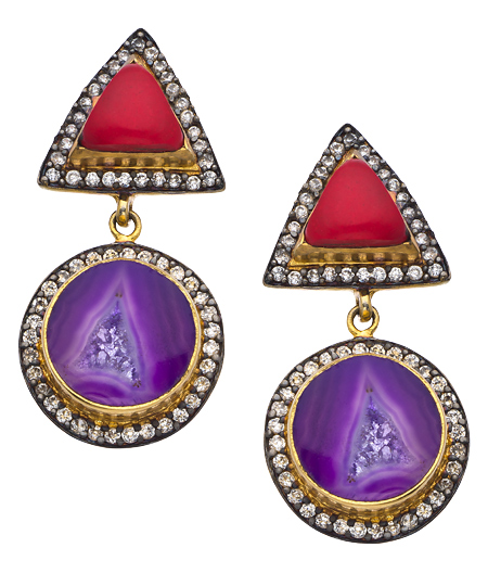 The perfect day-to-evening earrings are right here in Meghna Designs' gold and CZ druzy Zoya earrings. A study in contrast, in both shape and color, these lovely earrings are versatile enough to accessorize many of your favorite wardrobe options. Earrings have a post closure for pierced ears.