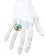Befitting of royalty, this Courtney ring from Melinda Maria looks like a true vintage find. Turquoise, cubic zirconia, and labradorite gemstones create a regal color combination on this ring that's accented perfectly in gold plated settings. Slip it on and watch others bow to your style.