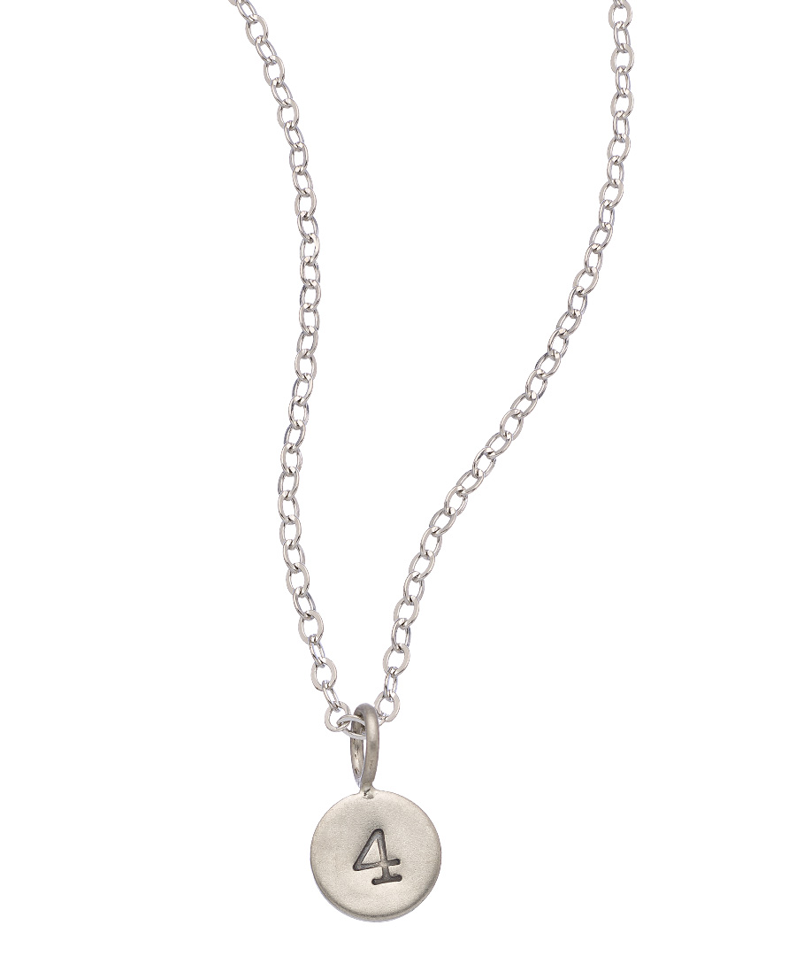 As homage to technology gone by, Metal Pressions has crafted this 3/8 inch sterling silver personalized number typewriter font pendant necklace. The round silver pendant features one initial of your choice in typewriter font. Please specify a single number when ordering. Please specify chain length when ordering. Necklace fastens with a lobster claw clasp.