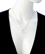 Don't you just adore fashion that's a symbol of good luck and good fortune? Why not make this inspirational good luck token necklace from Miriam Merenfeld your own personal good luck charm? It includes a round sterling silver pendant cutout with all the popular symbols known for making wishes come true. It's a bundle of joy.