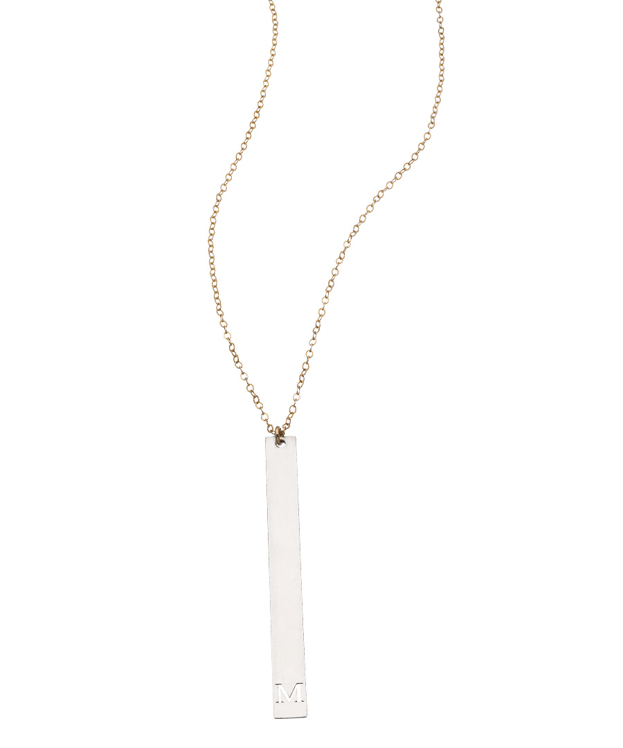 Whether you select your own or a sentimental initial, it will look stunning in this Miriam Merenfeld mixed metal vertical bar initial pendant necklace. A gleaming sterling silver bar showcases your chosen initial and is suspended from a strong gold chain. Necklace fastens with a spring clasp. Please specify initial when ordering.