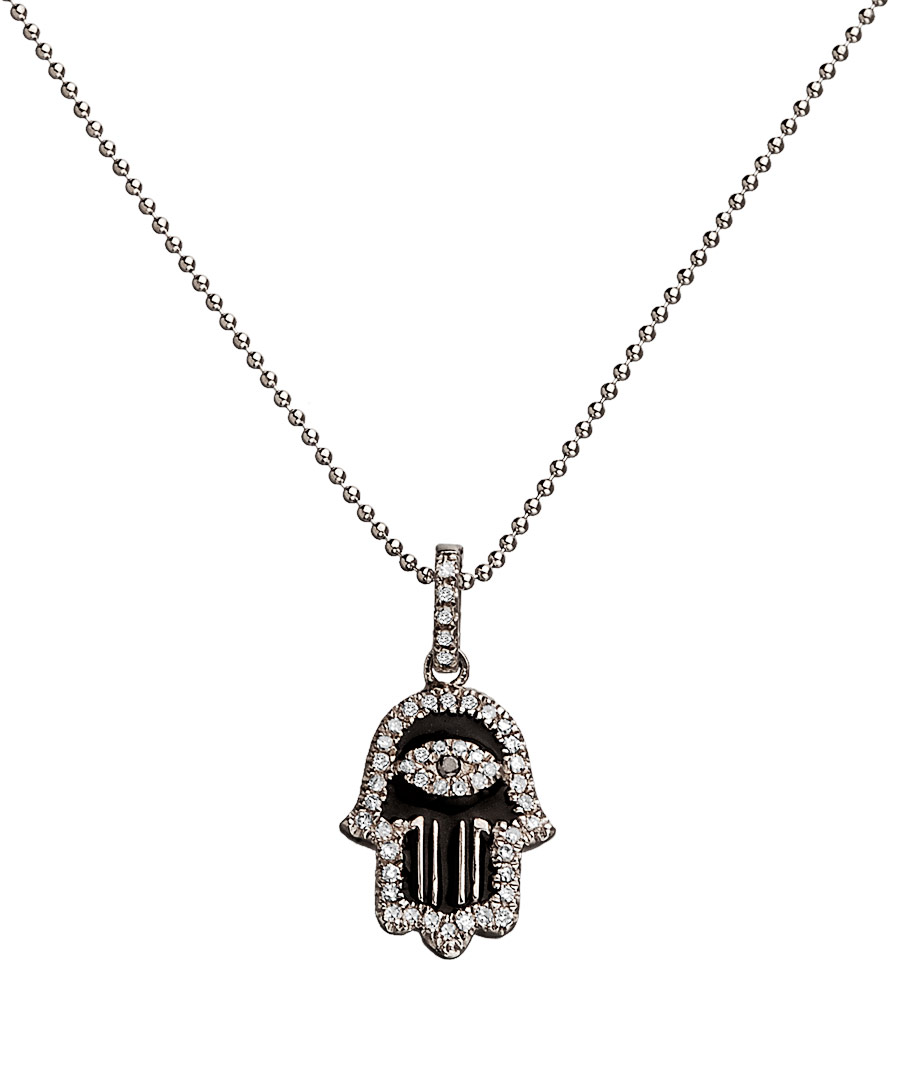 The popularity of hamsa pieces are on the rise and this black enamel hamsa pendant from Mystic Light gives us all the more reason to keep the trend going. The pendant is absolutely radiant with white diamonds as well as a single black diamond. You're going to want to keep this one in regular rotation.