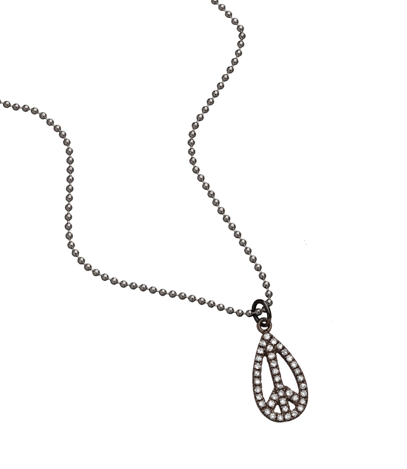 Add some symbolic flair to your ensemble with the diamond teardrop peace pendant necklace from Mystic Light. The beaded necklace is ornamented with a distorted peace sign pendant. It's an unimposing peace that will undoubtedly work well with many of the items in your wardrobe.