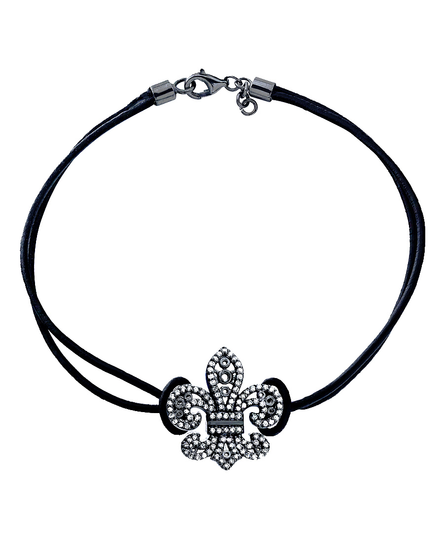 The Mystic Light fleur-de-lis bracelet gives an ancient symbol a young and modern feel. The ornately detailed fleur-de-lis charm with diamonds embellishments pops against the black double leather cord. A sterling silver with black rhodium lobster-claw clasp fastens this must-have bracelet.