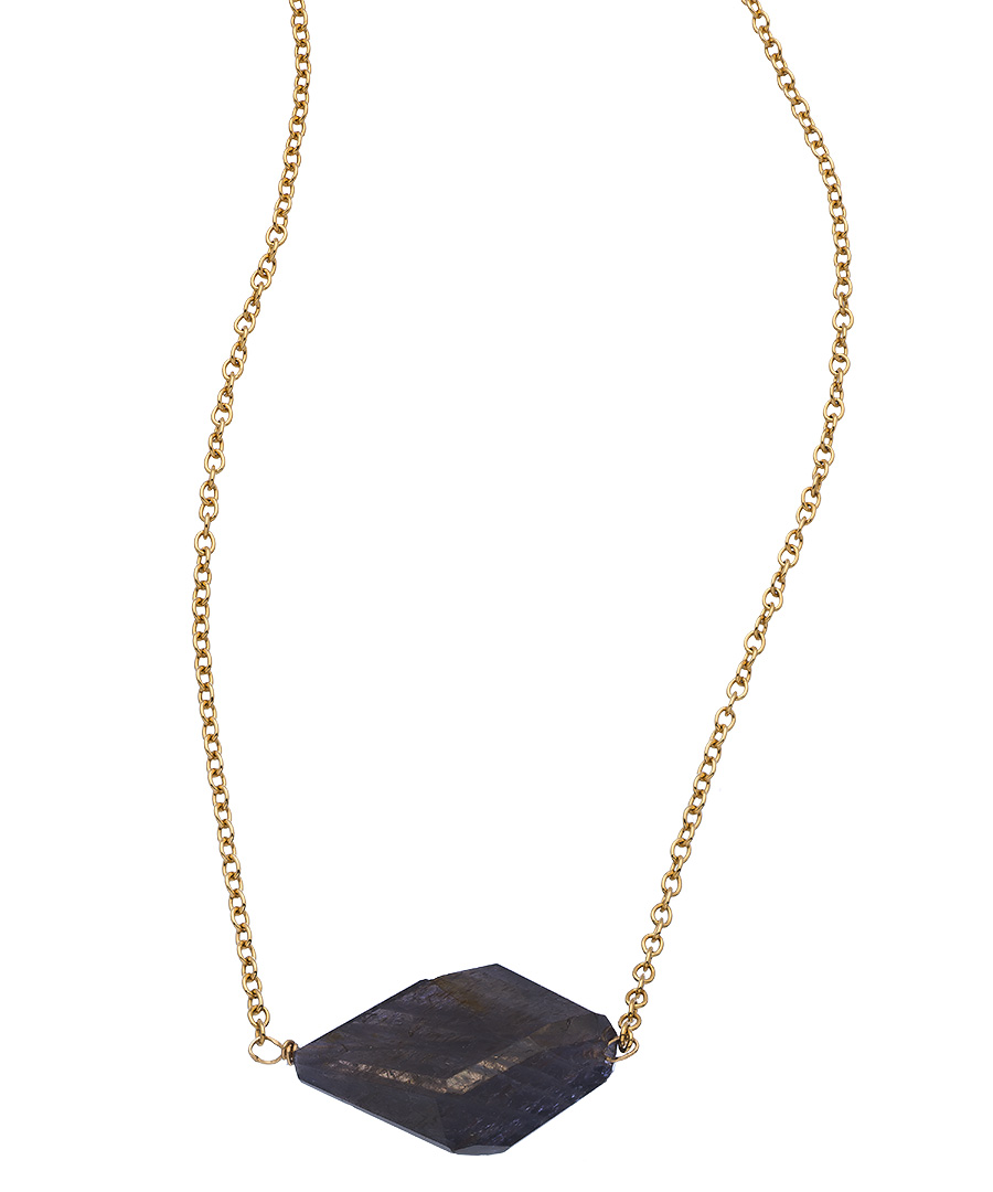 Nugaard Designs’ gold and iolite nugget pendant necklace is simplicity, elegance - and the very definition of “Less is more.” The single, stunning nugget is placed sideways on the chain and will layer with other necklaces as beautifully as it stands alone as you solo accessory. Necklace fastens with a spring clasp.