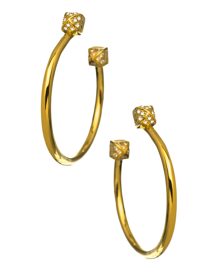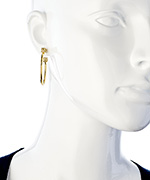 Jazz up any look with these CZ Razz hoop earrings from Nyla Star. The hoop is enhanced by the CZ studded cubes at either end and will enhance a variety of wardrobe options. Available in your choice of gold or silver, please make your selection when ordering. Earrings fasten with a post closure for pierced ears.