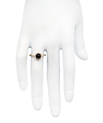 Sweet, sophisticated and stunning! All are apt descriptions of this amazing Nyla Star Sophia gold, CZ and onyx ring. A jet black onyx cabochon is set amid a ring of dazzling clear CZ stones and placed on a delicate gold band. You will treasure this ring that is suitable for everyday, or as your only party attire accessory. Please specify ring size when ordering.