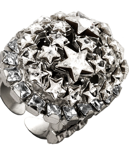 The oval star crystal cluster ring by Otazu will put stars in your eyes. A masterful mix of white Swarovski crystals explodes out of the face of this ring. This sparkling oversized ring will make any occasion feel festive.