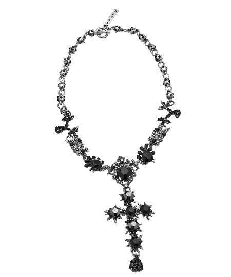 This stunning Otazu silver and black Swarovski crystal cross pendant necklace is beautiful and meaningful. The "chain" is made up of crystal studded orbs, leading up to the expertly realized design, with two stylized peacocks meeting in the center. The gorgeous finishing touch is the exquisite cross embellished with shimmering crystals. Necklace fastens with a toggle clasp.