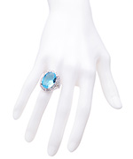 Every once and a while we come across a jewelry piece that'll take our breath away... and here it is! The oval blue topaz cocktail ring shimmers with a faceted topaz oval stone and clear cubic zirconia accents. It's the perfect ring for your enchanting nature.