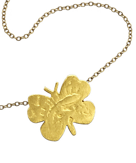 The Page Sargisson mini butterfly pendant necklace is a cute, covetable accessory that makes a great gift. The cutout butterfly is crafted of textured matte 10k gold for a fresh and modern look. The short chain necklace fastens with a lobster-claw clasp.