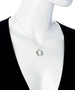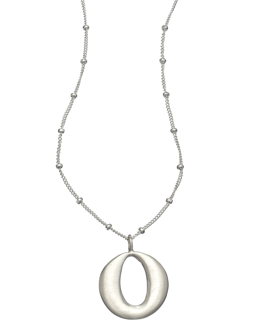 From the beaded silver chain to the exquisitely crafted pendant, set the tone with this Philippa Roberts Jewelry silver open circle pendant necklace. The pendant is a large circle cutout with a slight taper at the top. Necklace fastens with a lobster claw clasp.