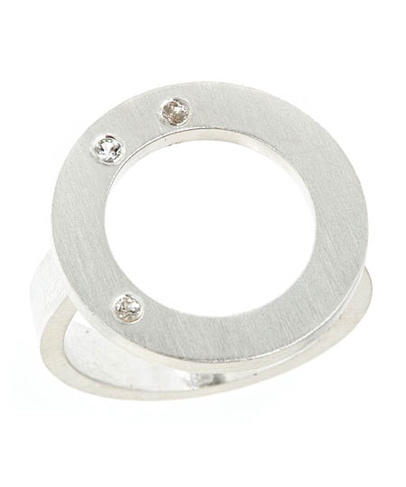 You'll love star gazing with this Pineapple Seed constellation ring. The three tiny white sapphires are arranged along the face of the cutout sterling silver circle. Diameter: .75 inch Metal: Sterling silver Stone: White sapphire