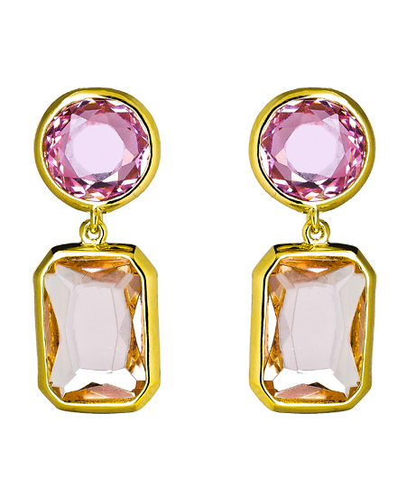 The bon bon drop earrings from Ponponella are just as sweet as the name indicates. The pink faceted stones are bezel set and linked together to form this dreamy look. These earrings fasten with post back closures for pierced ears.