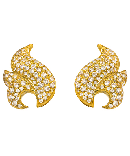 For a truly remarkable pair of earrings try on the Icarus clip-on earrings from Ponponella. The unusual shaped beauties are completely covered in radiant cubic zirconia stones. These earrings fasten with an Omega back closure for pierced ears.