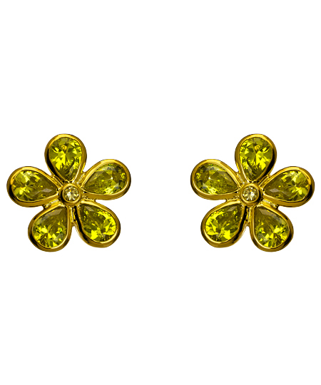 Let these peridot blossom clip-on earrings from Ponponella be your new favorite spring time accessory. The brightly colored earrings are hard not to notice. These earrings fasten with clip-on backs for both pierced or non pierced ears.