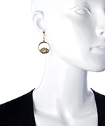 These gold flower hoop earrings from Privileged are simply adorable. Crafted with artisan precision, the drop hoops feature a lovely flower design peeking up for the lower part of the hoop. Earrings fasten with a french wire closure.